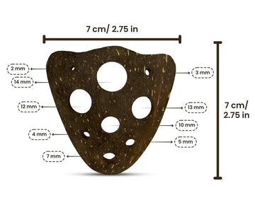 The Naturolic all-natural herb stripping tool provides a comfortable and efficient herb peeling experience. This 9-hole design effectively works with various herbs and vegetables including Thyme, Rosemary, Sage, Mint, Basil, Collard, Kale, and many more. The product comes with 9 different sized holes including 2 mm, 3 mm, 4 mm, 5 mm, 7 mm, 10 mm, 12 mm, 13 mm and 14 mm. The whole stripper is made out of high quality coconut shells without using any kind of metal, plastic or chemical materials. The ergonomic wave shape and curved surface enhance the grip to provide a comfortable herb stripping experience. This product is 100% backyard compostable.